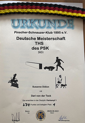 Deutsche Meisterschaften im Turnierhundesport THS in Bonn Susanne Didion mit Dari von der Teck - 1. Platz